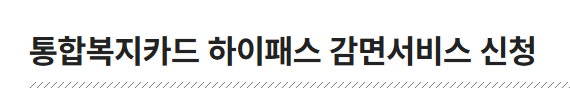 | 장애인 차량 | 복지카드 등록, 본인 또는 보호자 명의 차량 | 50% | 복지카드 + 차량등록 + 하이패스 등록 |
