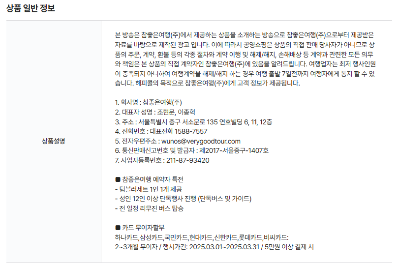 - 예약 방법: 공영 쇼핑몰에서 온라인 예약 가능