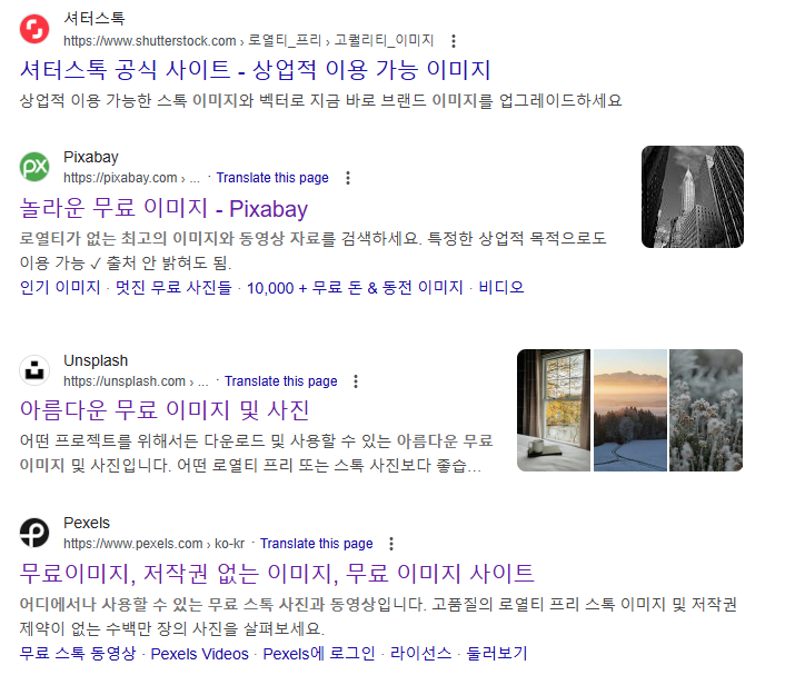 과거에는 셔터스톡(Shutterstock)이나 게티이미지(Getty Images) 같은 유료 사이트가 주로 사용되었지만, 최근에는 퀄리티 높은 무료 이미지 제공 사이트가 많아지면서 누구나 쉽게 이용할 수 있는 환경이 조성되었습니다.