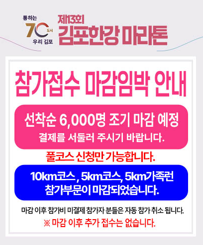 김포한강마라톤 참가 신청은 간단하지만, 선착순 마감이므로 서둘러야 합니다!
